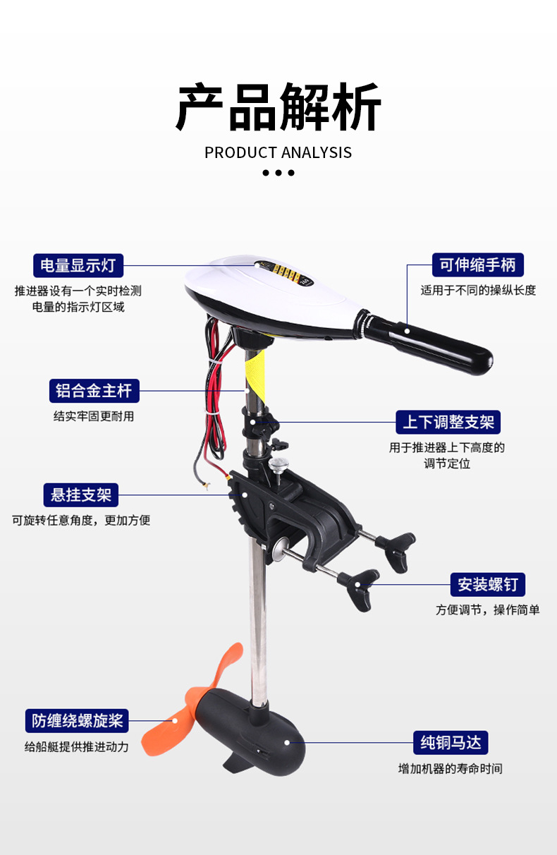 供应电动船用推进器船外机电动划桨橡皮艇马达手持螺旋桨挂桨机