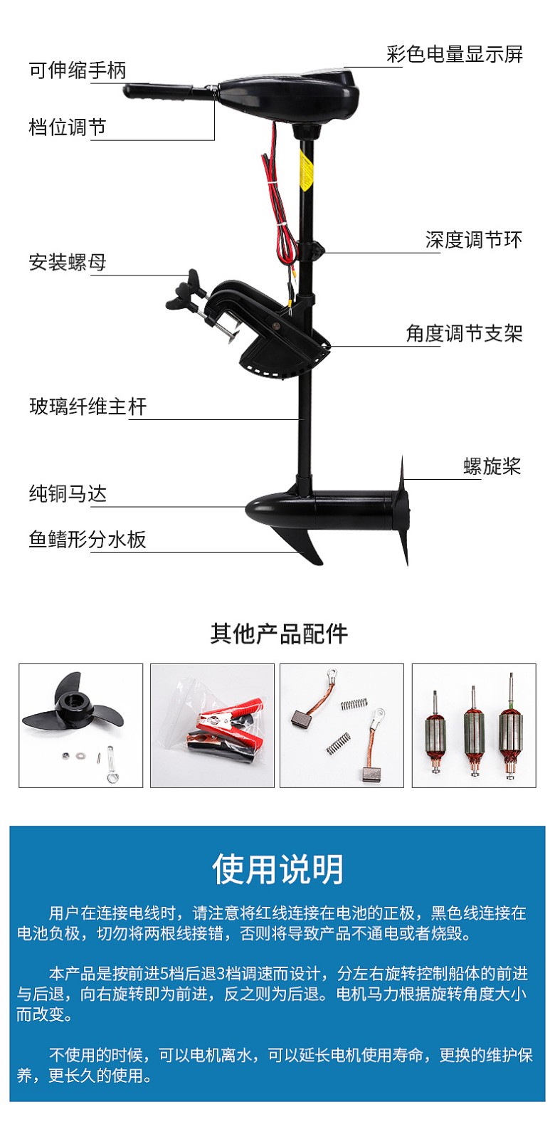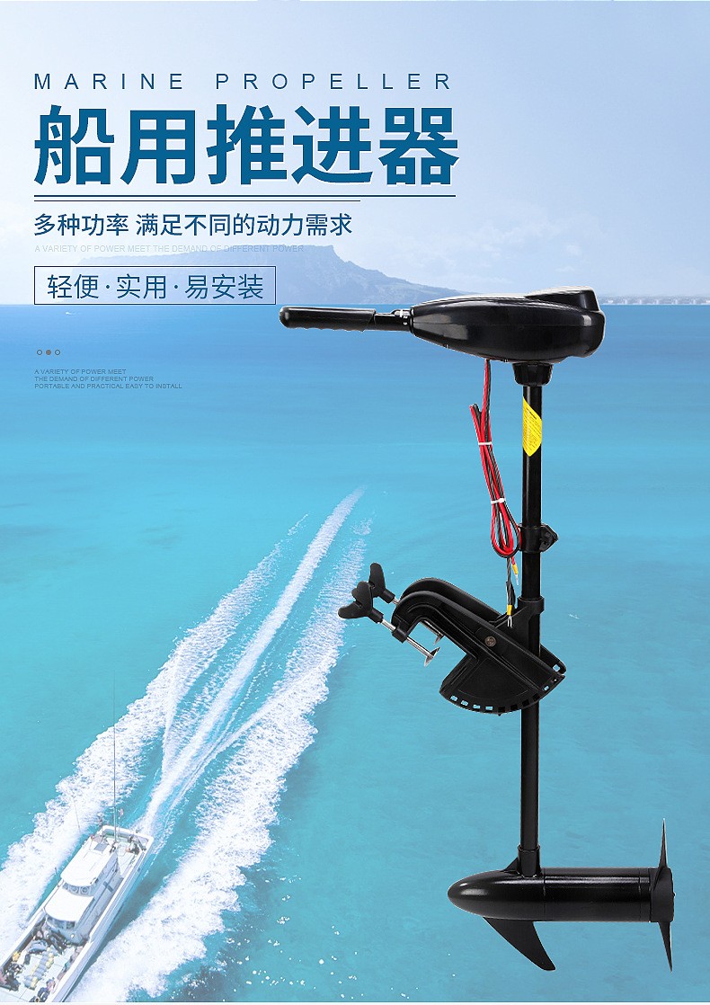 电动马达挂桨机尾外挂机塑料橡皮艇螺旋桨冲锋舟船外机船用推进器